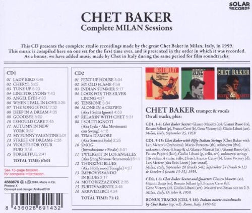 This CD presents the complete studio recordings made by the great Chet Baker in Milan, Italy in 1959.