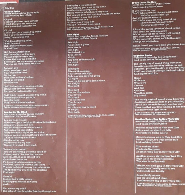 A1. Once or Twice 3:01 A2. You Are on My Mind 3:24 A3. Skin Tight 3:20 A4. If You Leave Me Now 3:58 A5. Together Again 3:53 A6. Another Rainy Day in New York City 3:03 B1. Mama Mama 3:31 B2. Scrapbook 3:28 B3. Gently I'll Wake You 3:36 B4. You Get It Up 3:34 B5. Hope for Love 3:04