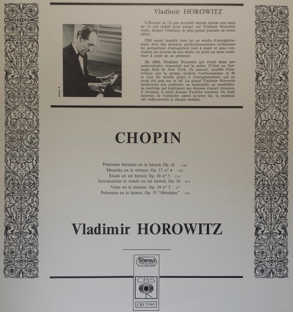 A1. Polonaise Fantaisie En La Bémol, Op. 61 13:05 A2. Mazurka En La Mineur, Op. 17 N° 4 4:06 A3. Etude En Sol Bémol, Op. 10 N° 5 1:34 B1. Introduction Et Rondo En Mi Bémol, Op. 16 10:13 B2. Valse En La Mineur, Op. 34 N° 2 4:57 B3. Polonaise En La Bémol, Op. 53 "Héroïque" 6:22