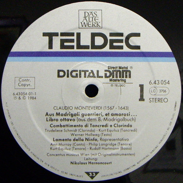 A1. Combattimento Di Tancredi E Clorinda 21:12 A2. Lamento Della Ninfa 5:24 B1. Ogni Amante È Guerrier 16:30 B2. Mentre Vaga Angioletta 10:17