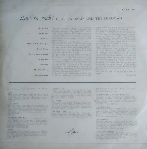 A1. "D" In Love 2:29 A2. Living Doll 2:35 A3. Move It! 2:24 A4. Willie And The Hand Jive 2:38 A5. Ready Teddy 1:59 B1. Do You Want To Dance 2:16 B2. I Love You 2:11 B3. Dynamite 1:56 B4. Mumblin' Rosie 2:18 B5. High Class Baby 2:11