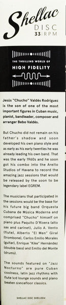Jesús “Chucho” Valdés Rodriguez is the son of one of the most important figures in Cuban music, pianist, bandleader, composer and arranger Bebo Valdés.But Chucho did not grow on his father’s shadow and soon developed his own piano style and as early as his early twenties he was already leading his own band. That was the early 1960s and he soon got his combo into the Areíto Studios of Havana to record the amazing jazz sessions that would be released by the soon to be legendary label EGREM. The musicians that participated in the sessions would be the base for his future big band Orquesta Cubana de Música Moderna and comprised “Chucho” himself on piano plus Paquito D’Rivera (alto sax and clarinet), Julio A. Vento (flute), Alberto “El Men” Giral (trombone), Carlos Emilio Morales (guitar), Enrique “Kike” Hernández (double bass) and Emilio del Monte (drums). The sounds featured on “Jazz Nocturno” are pure Cuban coolness, latin jazz rhythms with flute led lounge sounds and piano beaten dancefloor classics.
