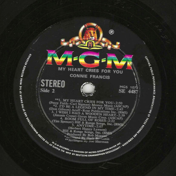 All compositions BMI, except: My Heart Cries For You & I Wish i Had A Wooden Heart (ASCAP) Published By – Tree Publishing Co., Inc. A1 Published By – Pamper Music, Inc. A2 Published By – Travis Music Co. A3 Published By – Fred Rose Music, Inc. A4 Published By – Vouge Music Co. A5 Published By – Acuff Rose Publications, Inc. A6, B2 Published By – Massey Music B1 Published By – Gladys Music Inc. B3 Published By – Hill & Range Songs, Inc. B4 To B5 First catalogue # on front cover and labels. Second catalogue # on rear of cover. Third catalogue # on labels. "Deutsche Grammophon Gesellschaf" on both labels at 6 o'clock.