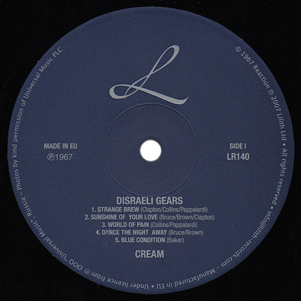 A1. Strange Brew 2:45 A2. Sunshine Of Your Love 4:08 A3. World Of Pain 3:05 A4. Dance The Night Away 3:31 A5. Blue Condition 3:26 B1. Tales Of Brave Ulysses 2:50 B2. Swlabr 2:32 B3. We're Going Wrong 3:25 B4. Outside Woman Blues 2:20 B5. Take It Back 3:05 B6. Mother's Lament 1:47