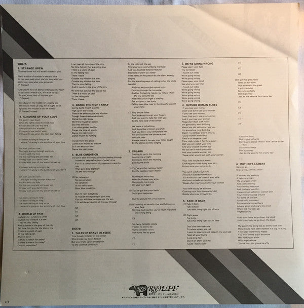 A1. Strange Brew A2. Sunshine Of Your Love A3. World Of Pain A4. Dance The Night Away A5. Blue Condition B1. Tales Of Brave Ulysses B2. Swlabr B3. We're Going Wrong B4. Outside Woman Blues B5. Take It Back B6. Mother's Lament