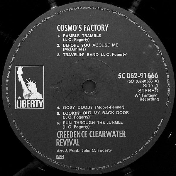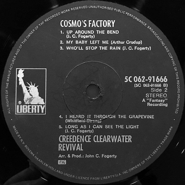A1. Ramble Tamble 7:09 A2. Before You 3:24 A3. Travelin' Band 2:07 A4. Ooby Dooby 2:05 A5. Lookin' Out My Back Door 2:31 A6. Run Through The Jungle 3:09 B1. Up Around The Bend 2:40 B2. My Baby Left Me 2:17 B3. Who'll Stop The Rain 2:28 B4. I Heard It Through The Grapevine 11:05 B5. Long As I Can See The Light 3:33