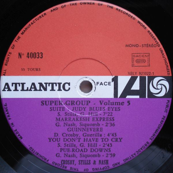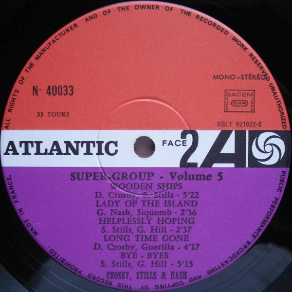 A1. Suite: Judy Blue Eyes 7:22 A2. Marrakesh Express 2:36 A3. Guinnevere 4:43 A4. You Don't Have To Cry 2:43 A5. Pre-Road Downs 2:59 B1. Wooden Ships 5:22 B2. Lady Of The Island 2:36 B3. Helplessly Hoping 2:37 B4. Long Time Gone 4:17 B5. 49 Bye-Byes 5:15