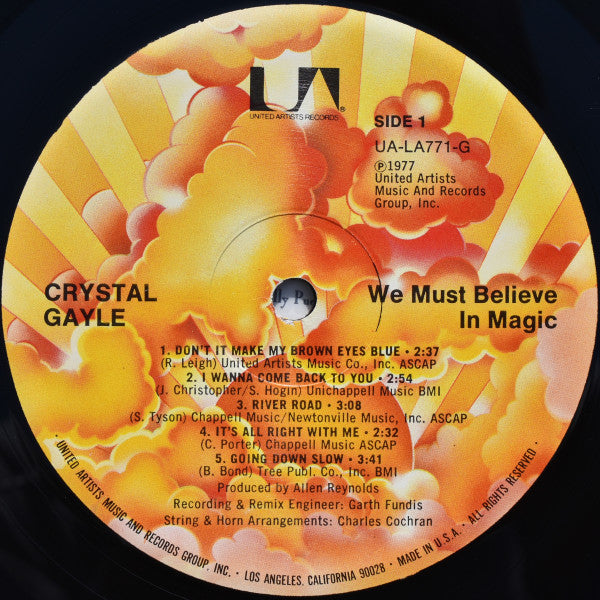 A1. Don't It Make My Brown Eyes Blue 2:37 A2. I Wanna Come Back To You 2:54 A3. River Road 3:08 A4. It's All Right With Me 2:32 A5. Going Down Slow 3:41 B1. All I Wanna Do In Life 2:26 B2. Make A Dream Come True 3:06 B3. Green Door 3:11 B4. Funny 2:05 B5. We Must Believe In Magic 4:09