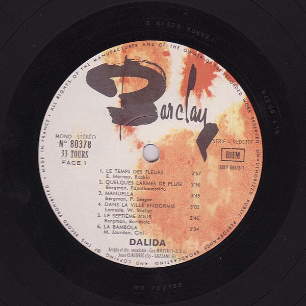 A1. Le Temps Des Fleurs 3:57 A2. Quelques Larmes De Pluie 2:56 A3. Manuella 2:45 A4. Dans La Ville Endormie 3:05 A5. Le Septième Jour 2:46 A6. La Bambola 3:34 B1. Les Anges Noirs 2:50 B2. Je M'Endors Dans Tes Bras 3:10 B3. Tire L'Aiguille 3:25 B4. Le Petit Perroquet 2:50 B5. Je Me Repose 2:42 B6. Tzigane 3:20