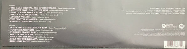 A1. Daniel Pemberton - The Dark Crystal: Age Of Resistance 3:42 A2. Daniel Pemberton - Another World, Another Time 3:26 A3. Daniel Pemberton - Story Of The Dark Crystal 3:11 A4. Daniel Pemberton - Rian + Mira Dreamfast 4:14 A5. Daniel Pemberton - Aughra Awakes 2:03 A6. Daniel Pemberton - The Crystal Chamber 3:15 A7. Daniel Pemberton - Essence Draining 2:46 B1. Daniel Pemberton - What Lies At The Dream's End 3:18 B2. Daniel Pemberton - Together We Fight 4:48 B3. Daniel Pemberton - The Blue Flames Part 1 3:51 B4. Samuel Sim - Deet In The Woods 2:10 B5. Daniel Pemberton - Speak For The Dead 2:44 B6. Samuel Sim - Brea And The Library 1:32 B7. Daniel Pemberton - Her Light Faded 2:37