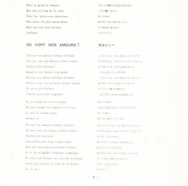 A. Aime Ceux Qui T'Aiment = 天使のらくがき 2:20B. Ou Vont Nos Amours? = 恋はどこへ 2:38