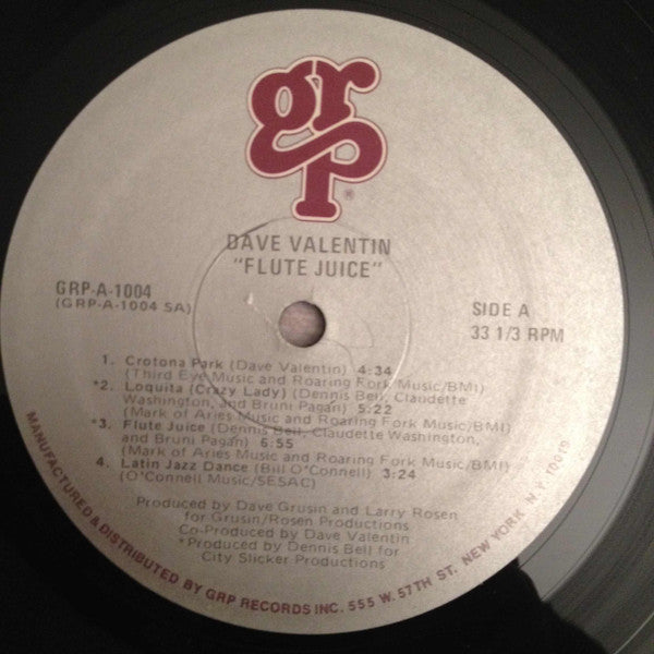 A1. Crotona Park 4:34 A2. Loquita (Crazy Lady) 5:22 A3. Flute Juice 6:55 A4. Latin Jazz Dance 3:24 B1. Times Long Gone 5:41 B2. Footprints 5:43 B3. Merle The Pearl 5:26 B4. Crotona Park Reprise 0:47