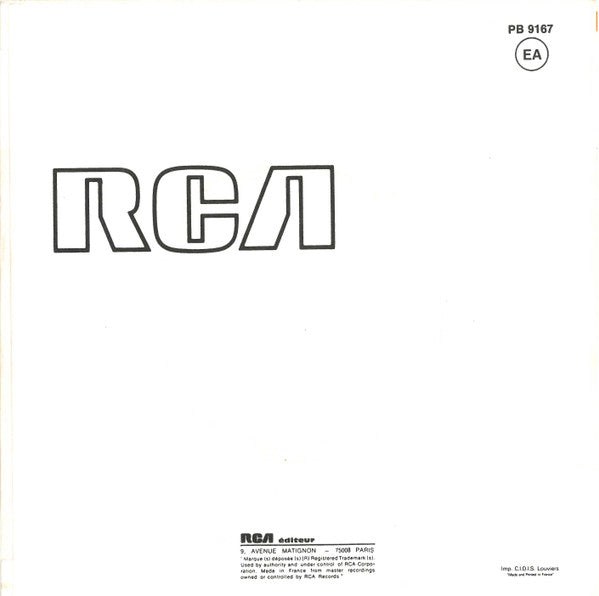 9. Avenue Matignon - 75008 Paris Marque (s) déposée(s) (R) Registered Trademark (s). Used by authority and under control of RCA Corporation. Made in France from master recordings owned or controlled by RCA Records.