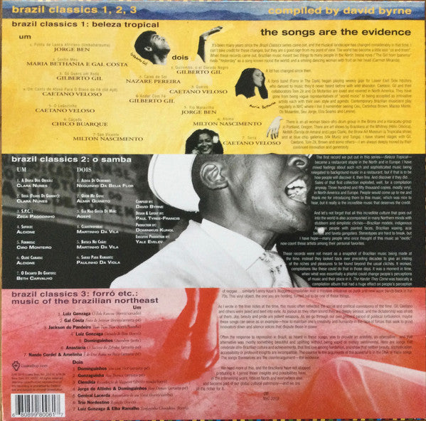 A1. Jorge Ben - Ponta De Lança Africano (Umbabarauma) 3:50 A2. Maria Bethânia, Gal Costa - Sonho Meu 2:52 A3. Gilberto Gil - Só Quero Um Xodó 4:52 A4. Caetano Veloso - Um Canto De Afoxé Para O Bloco Do Llê (Llê Ayê) 3:02 A5. Caetano Veloso - O Leãozinho 3:05 A6. Chico Buarque - Caçada 3:03 A7. Milton Nascimento - San Vicente 2:42 B1. Gilberto Gil - Quilombo, O El Dorado Negro 4:42 B2. Nazaré Pereira - Caixa De Sol 3:22 B3. Caetano Veloso - Queixa 4:24 B4. Gilberto Gil - Andar Com Fé 3:17 B5. Jorge Ben - Fio Maravilha 2:15 B6. Milton Nascimento - Anima 4:12 B7. Caetano Veloso - Terra 6:42 . Brazil Classics 2: O Samba C1. Clara Nunes - A Deusa Dos Orixas 2:29 C2. Clara Nunes - Ijexa (Filhos De Gandhy) 3:49 C3. Zeca Pagodinho - S.P.C. 3:34 C4. Alcione - Sufoco 4:06 C5. Ciro Monteiro - Formosa 2:54 C6. Alcione - Olere Camara 3:05 C7. Beth Carvalho - O Encanto Do Gantois 3:39 D1. Neguinho da Beija-Flor - Aldeia De Okarimbi 3:09 D2. Almir Guineto - Quem Me Guia 3:14 D3. Agepê - Ela Nao Gosta De Mim 4:30 D4. Martinho Da Vila - Claustrofobia 3:21 D5. Martinho Da Vila - Batua No Chao 3:36 D6. Paulinho Da Viola - Sarau Para Ramades 3:36 . Brazil Classics 3: Forro Etc.: Music Of The Brazilian Northeast E1. Luiz Gonzaga - O Fole Roncou 2:46 E2. Gal Costa - Festa Do Interior 3:03 E3. Jackson Do Pandeiro - Tum-Tum-Tum 2:32 E4. Luiz Gonzaga - Danado De Bom 2:43 E5. Dominguinhos - Querubim 2:48 E6. Anastácia - O Sucesso Da Zefinba 2:07 E7. Nando Cordel, Amelinha - E De Dar Agua Na Boca 3:58 E8. João Do Vale, Amelinha - Estrela Miúda 3:00 F1. Dominguinhos - Vou Com Voce 2:04 F2. Gonzaguinha - Asa Branca 3:22 F3. Clemilda - Recordacao De Vaquero 2:39 F4. Jorge De Altinho, Dominguinhos - Bom Demais 3:19 F5. Marinalva - Tarde Nordestina 3:17 F6. Genival Lacerda - Aniversário Do Seu Vavá 3:26 F7. Trio Nordestino - Rejecao 2:09 F8. Luiz Gonzaga, Elba Ramalho - Sanfoninha Choradeira 2:59
