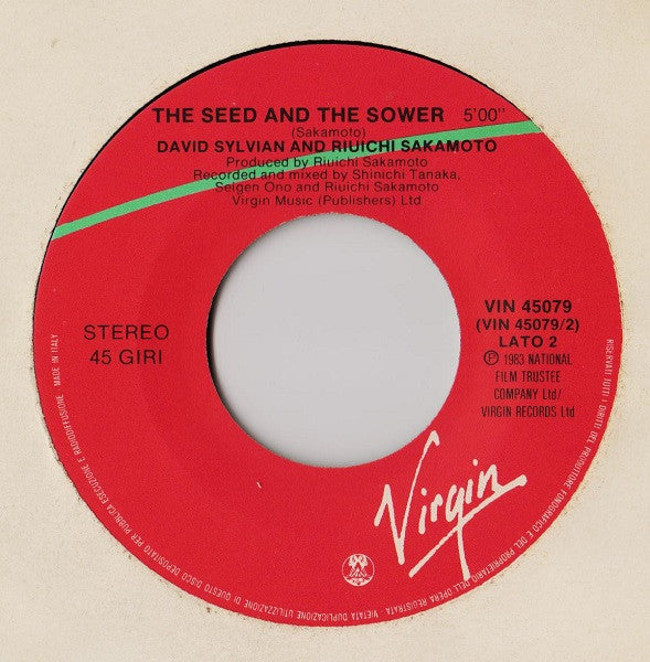 ℗ 1983 National Film Trustee Company Ltd./ Virgin Records Ltd. © 1983 Virgin Records Ltd. Virgin Dischi S.R.L. Milano Distribuzione Dischi Ricordi SPA Taken From The Film 'Merry Christmas Mr. Lawrence' Colonna Sonora Originale del Film: "Furyo" Side A: Published by Virgin Music Publishers Ltd./ Opium Publishing/Chadwick Nomis Ltd. Side B: Published by Virgin Music Publishers Ltd