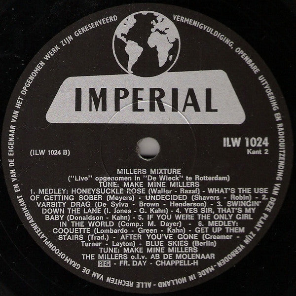 A1. Shine A2. I Let A Song Go Out Of My Heart A3. Stardust A4. Blue Room A5. The Touch Of Your Lips A6. The Lonesome Road A7. 'Deed I Do . Medley: B1.1. Tune: Make Mine Millers B1.2. Honeysuckle Rose B1.3. What's The Use Of Getting Sober B1.4. Undecided . - B2. Varsity Drag B3. Swingin' Down The Lane B4. Yes Sir, That's My Baby B5. If You Were The Only Girl In The World . Medley: B6.1. Coquette B6.2. Get Up Them Stairs B6.3. After You've Gone B6.4. Blue Skies B6.5. Tune: Make Mine Millers