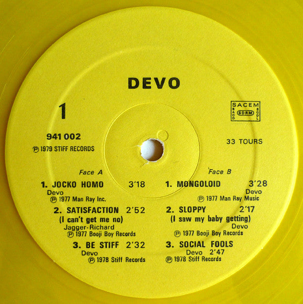 A1. Jocko Homo 3:18 A2. (I Can't Me Get No) Satisfaction 2:52 A3. Be Stiff 2:32 B1. Mongoloid 3:28 B2. Sloppy (I Saw My Baby Getting) 2:17 B3. Social Fools 2:47