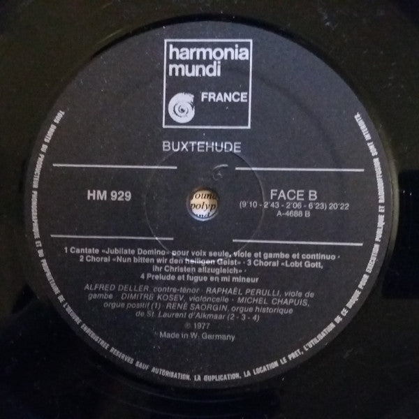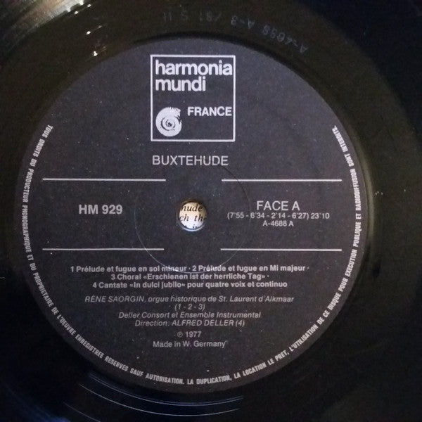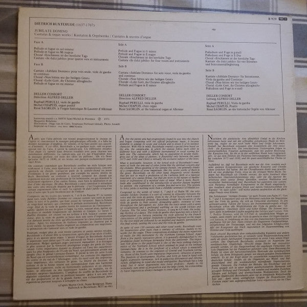 A1. Prélude Et Fugue En Sol Mineur 7:55 A2. Prélude Et Fugue En Mi Majeur 6:34 A3. Choral "Erschienen Ist Der Herrliche Tag" 2:14 A4. Cantate "In Duici Jubilo" Pour Quatre Voix Et Continuo 6:27 B1. Cantate "Jubilo Domino" Pour Voix Seule, Viole De Gambe Et Continuo 9:10 B2. Choral "Nun Bitten Wir Den Heiligen Geist" 2:43 B3. Choral "Lobt Gott, Ihr Christen Allzugleich" 2:06 B4. Prélude Et Fugue En Mi Mineur 6:23