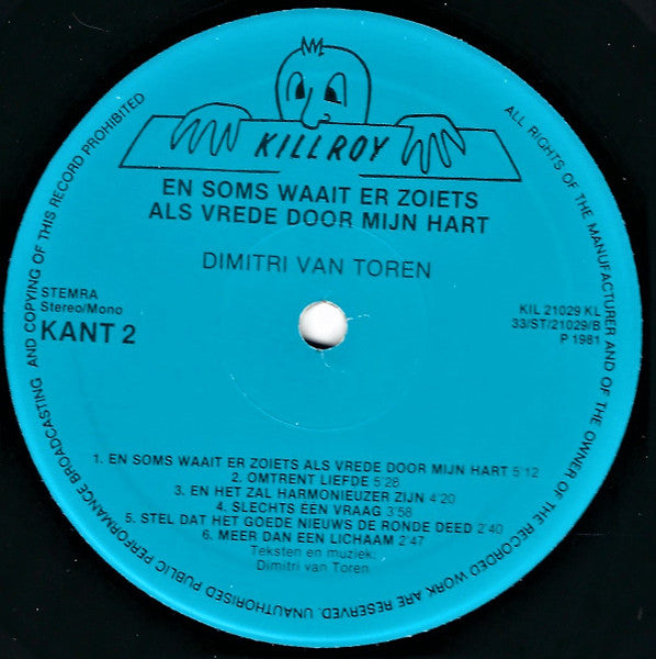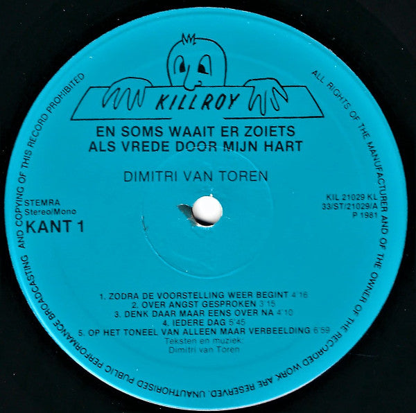A1. Zodra De Voorstelling Weer Begint 4:16 A2. Over Angst Gesproken 3:15 A3. Denk Daar Maar Eens Over Na 4:10 A4. Iedere Dag 5:45 A5. Op Het Toneel Van Alleen Maar Verbeelding 6:59 B1. En Soms Waait Er Zoiets Als Vrede Door Mijn Hart 5:12 B2. Omtrent Liefde 5:28 B3. En Het Zal Harmonieuzer Zijn 4:20 B4. Slechts Één Vraag 3:58 B5. Stel Dat Het Goede Nieuws De Ronde Deed 2:40 B6. Meer Dan Een Lichaam 2:47