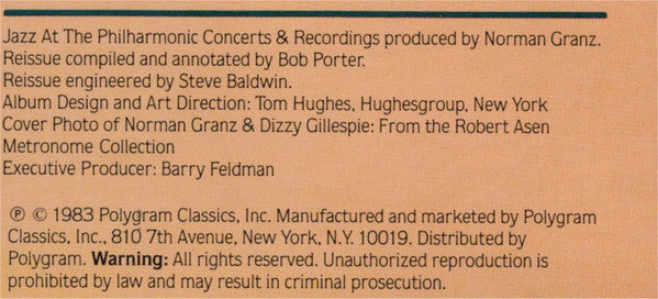 - Front cover: Jazz At The Philharmonic The Challenges Dizzy Gillespie ■ Roy Eldridge ■ Ben Webster