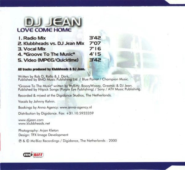 1. Love Come Home (Radio Mix) 3:422. Love Come Home (Klubbheads Vs. DJ Jean Mix) 7:073. Love Come Home (Vocal Mix) 7:164. "Groove To The Music" 4:15Video. Love Come Home 3:42