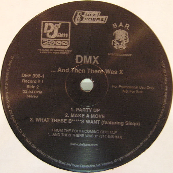 A1. One More Road To Cross A2. The Professional A3. Fame A4. Here We Go Again B1. Party Up B2. Make A Move B3. What These B*****s Want C1. What's My Name? C2. More 2 A Song C3. Don't You Ever C4. D-X-L (Hard White) D1. Comin' For Ya D2. Angel D3. Good Girls, Bad Guys