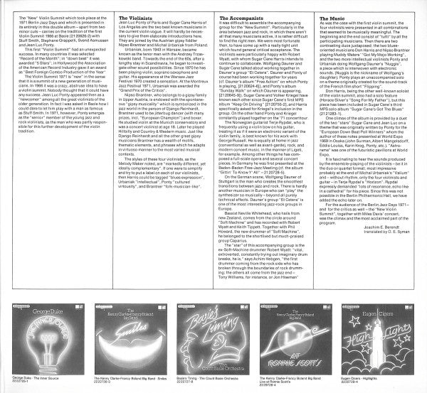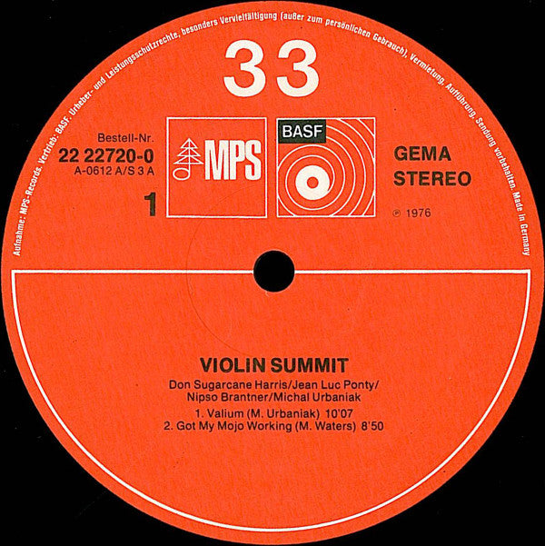A1. Valium 10:02 A2. Got My Mojo Working 8:50 B1. Nuggis 12:52 B2. Horizon 7:52 C1. Flipping 12:30 C2. Astrorama 11:22 D. Violin Summit Nr. II 17:03