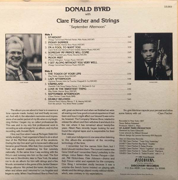 "This was and is my very first professional work in recording as sole arranger for an album, and my first recording with Donald Byrd."
