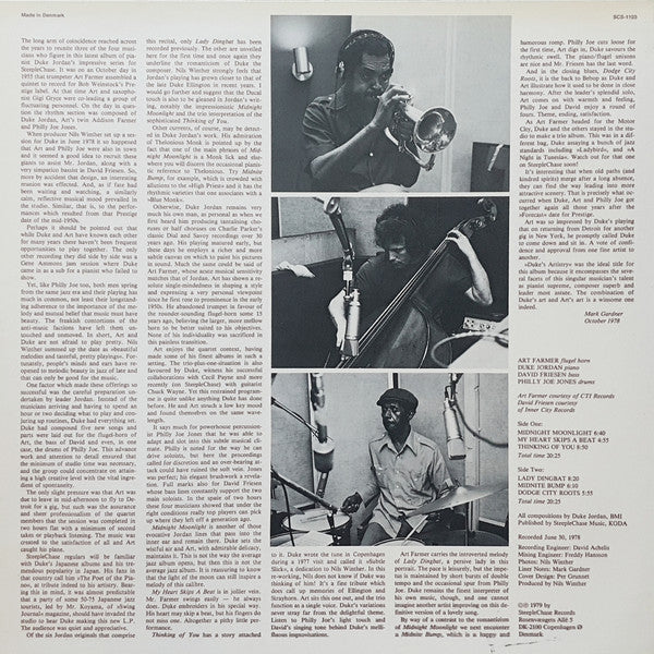 A1. Midnight Moonlight 6:40 A2. My Heart Skips A Beat 4:55 A3. Thinking Of You 8:50 B1. Lady Dingbat 8:20 B2. Midnite Bump 6:10 B3. Dodge City Roots 5:55
