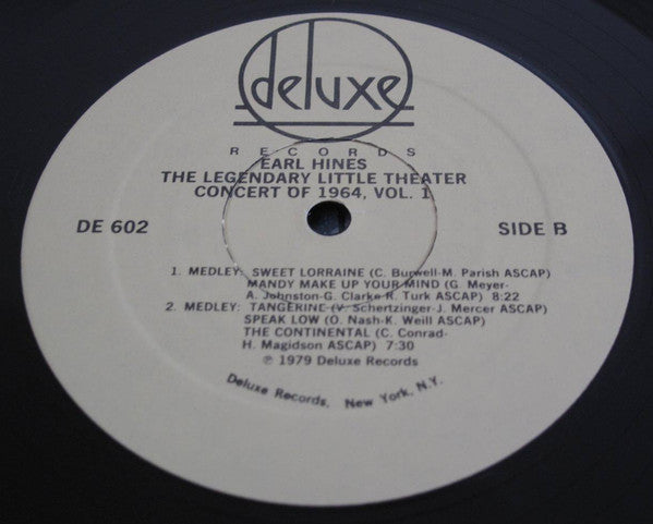 A1. Stealin' Apples 4:15 A2. Fats Waller Medley (Ain't Misbehavin' / Two Sleepy People / Keepin' Out Of Mischief Now / Jitterbug Waltz / Honeysuckle Rose / Lulu's Back In Town) 12:00 B1. Medley: Sweet Lorraine / Mandy Make Up Your Mind 8:22 B2. Medley: Tangerine / Speak Low / The Continental 7:30