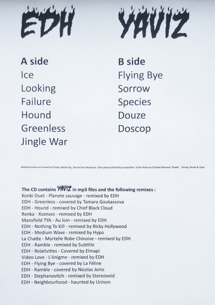 A1. Edh - Ice A2. Edh - Looking A3. Edh - Failure A4. Edh - Hound A5. Edh - Greenless A6. Edh - Jingle War B1. Edh - Flying Bye B2. Edh - Sorrow B3. Edh - Species B4. Edh - Douze B5. Edh - Doscop CD-1. Edh - Ice CD-2. Edh - Looking CD-3. Edh - Failure CD-4. Edh - Hound CD-5. Edh - Greenless CD-6. Edh - Jingle War CD-7. Edh - Flying Bye CD-8. Edh - Sorrow CD-9. Edh - Species CD-10. Edh - Douze CD-11. Edh - Doscop CD-12. The Konki Duet - Planete Sauvage (Remixed By EDH) CD-13. The Konki Duet - Greenless (Covered By Tamara Goukassova) CD-14. The Konki Duet - Hound (Remixed By Chief Black Cloud) CD-15. Renka - Xsenses (Remixed By EDH) CD-16. Mansfield.TYA - Au Loin (Remixed By EDH) CD-17. Mansfield.TYA - Nothing To Kill (Remixed By Ricky Hollywood) CD-18. Mansfield.TYA - Medium Wave (Remixed By Hypo) CD-19. La Chatte - Mortelle Robe Chinoise (Remixed By EDH) CD-20. La Chatte - Ramble (Remixed By Subtitle) CD-21. La Chatte - Relativities (Covered By Elmapi) CD-22. Video Love - L'énigme (Remixed By EDH) CD-23. Video Love - Flying Bye (Covered By La Féline) CD-24. Video Love - Ramble (Covered By Nicolas Jorio) CD-25. Video Love - Stephanovitch (Remixed By Stereovoid) CD-26. Video Love - Neighbourhood (Haunted By Unison)