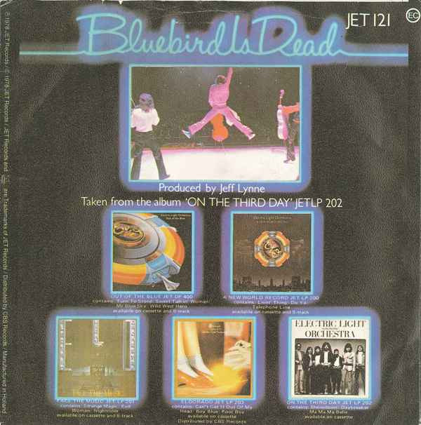 ℗ 1978 Jet Records / © 1978 Jet Records / Distributed by CBS Records / Manufactured in Holland ℗ 1978 Jet Inc. Made in Holland "Sweet Talkin' Woman" taken from the Jet Album: "Out Of The Blue" JT-LA 823 "Bluebird Is Dead" taken from the Jet LP: "On The Third Day" JET LP 202
