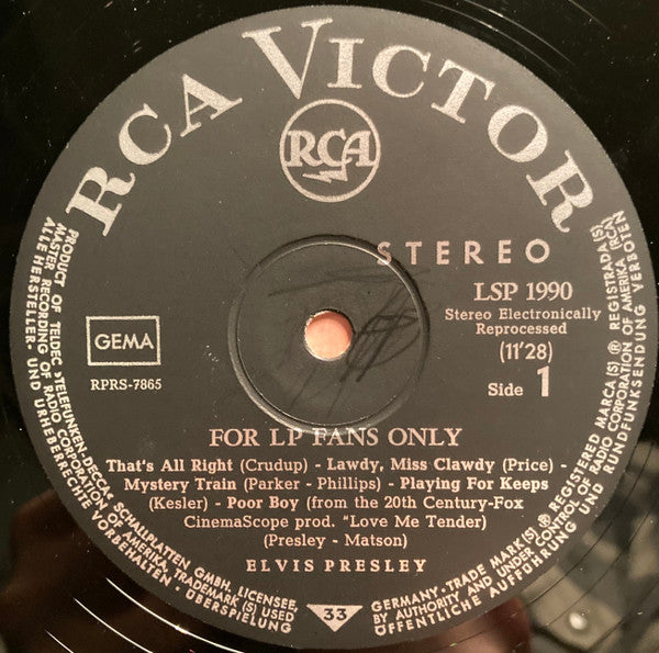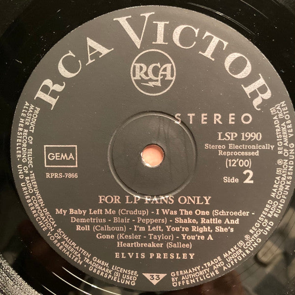 A1. That's All Right 1:59 A2. Lawdy, Miss Clawdy 2:11 A3. Mystery Train 2:28 A4. Playing For Keeps 2:55 A5. Poor Boy 2:16 B1. My Baby Left Me 2:14 B2. I Was The One 2:37 B3. Shake, Rattle And Roll 2:29 B4. I'm Left, You're Right, She's Gone 2:41 B5. You're A Heartbreaker 2:14
