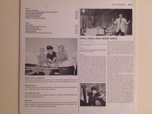 A1. Plantation Rock 4:13 A2. Dainty Little Moonbeams / Girls, Girls, Girls 2:45 A3. We're Coming In Loaded 1:16 A4. The Walls Have Ears 2:19 A5. Song Of The Shrimp 2:27 A6. Thanks To The Rolling Sea 1:25 B1. Earth Boy 2:38 B2. A Boy Like Me, A Girl Like You 1:15 B3. We'll Be Together 1:16 B4. I Don't Wanna Be Tied 2:04 B5. Wooden Heart 2:17 B6. A Can And A High Starched Collar 1:45
