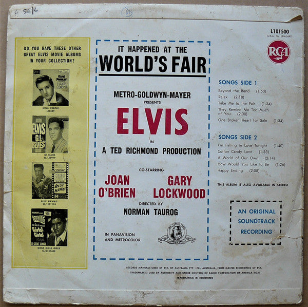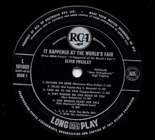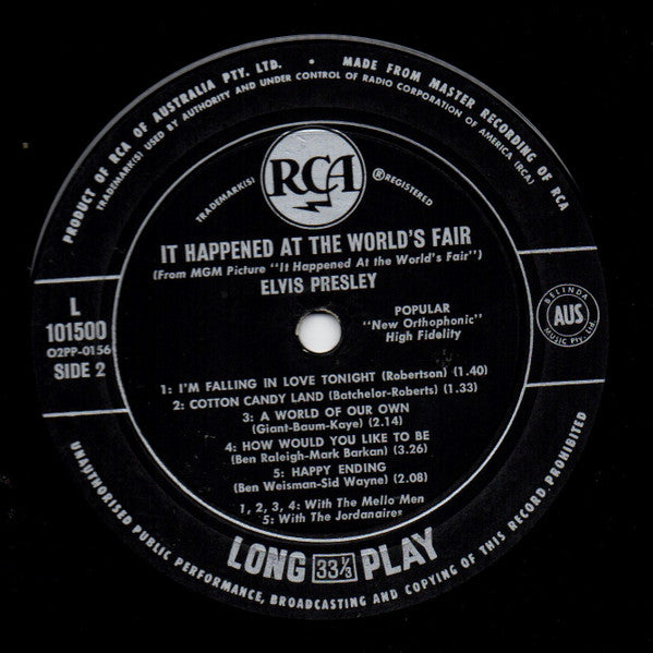 A1. Beyond The Bend 1:50 A2. Relax 2:18 A3. Take Me To The Fair 1:34 A4. They Remind Me Too Much Of You 2:30 A5. One Broken Heart For Sale 1:34 B1. I'm Falling In Love Tonight 1:40 B2. Cotton Candy Land 1:33 B3. A World Of Our Own 2:14 B4. How Would You Like To Be 3:26 B5. Happy Ending 2:08