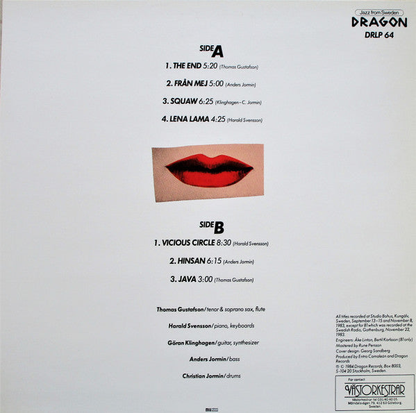 All titles recorded at Studio Bohus, Kungälv, Sweden, September 13-15 and November 8, 1983, except for B1 which was recorded at the Swedish Radio, Gothenburg, November 22, 1983.