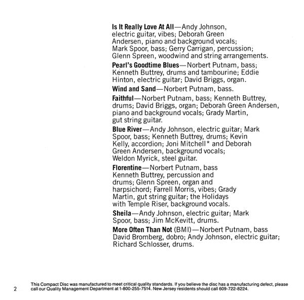 1. Is It Really Love At All 5:212. Pearl's Goodtime Blues 2:213. Wind And Sand 4:304. Faithful 3:155. Blue River 4:466. Florentine 3:317. Sheila 4:378. More Often Than Not 4:529. Round The Bend 5:38