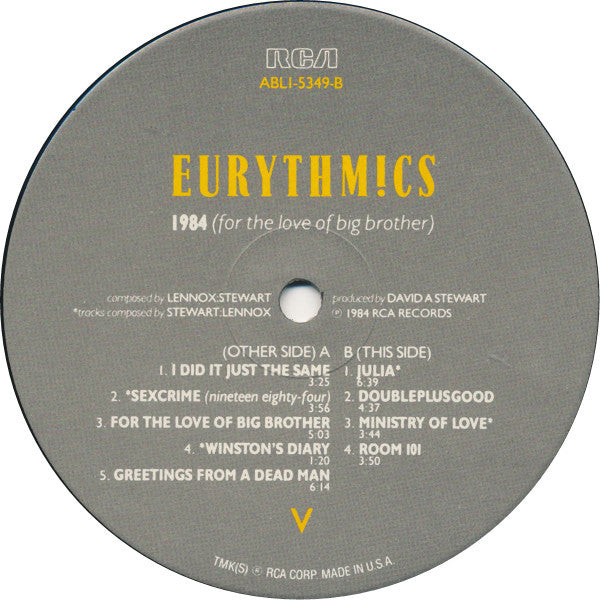 A1. I Did It Just The Same 3:25 A2. Sexcrime (Nineteen Eighty-Four) 3:56 A3. For The Love Of Big Brother 5:03 A4. Winston's Diary 1:20 A5. Greetings From A Dead Man 6:14 B1. Julia 6:39 B2. Doubleplusgood 4:37 B3. Ministry Of Love 3:44 B4. Room 101 3:50