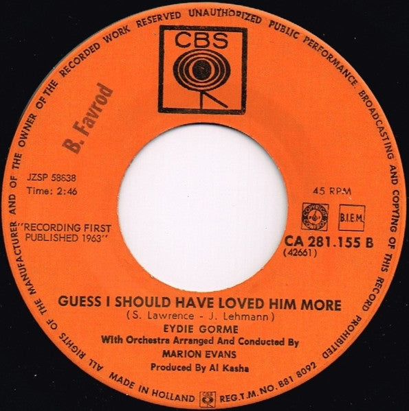 A. Blame It On The Bossa Nova 2:29B. Guess I Should Have Loved Him More 2:46