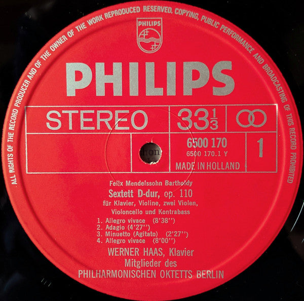 Spine: ■ Philips ■ Mendelssohn ■ Klaviersextett – Klavierquartett ■ Werner Haas ■ Philharmonisches Oktett Berlin ■ 6500 170