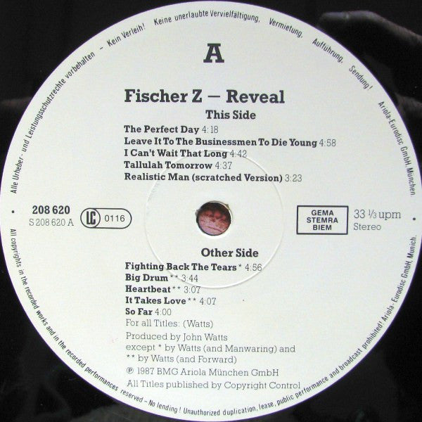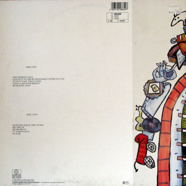 A1. The Perfect Day 4:18 A2. Leave It To The Businessmen To Die Young 4:58 A3. I Can't Wait That Long 4:42 A4. Tallulah Tomorrow 4:37 A5. Realistic Man (Scratched Version) 3:23 B1. Fighting Back The Tears 4:56 B2. Big Drum 3:44 B3. Heartbeat 3:07 B4. It Takes Love 4:07 B5. So Far 4:00