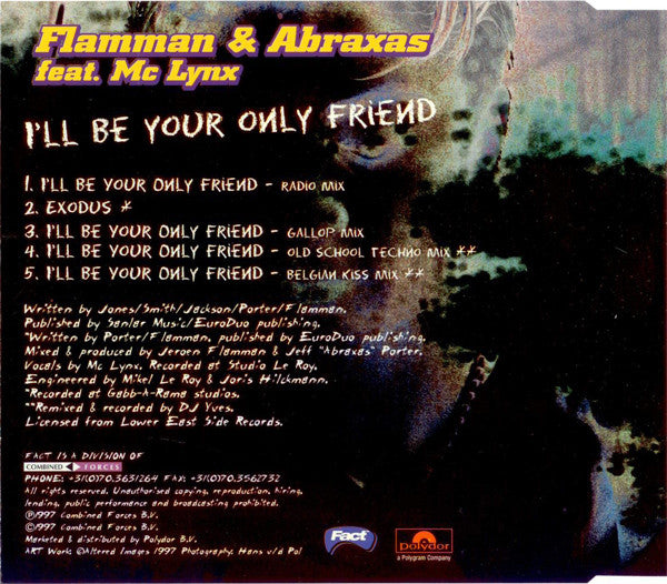 1. I'll Be Your Only Friend (Radio Mix) 3:192. Exodus 4:583. I'll Be Your Only Friend (Gallop Mix) 5:254. I'll Be Your Only Friend (Old School Techno Mix) 5:345. I'll Be Your Only Friend (Belgian Kiss Mix) 6:14