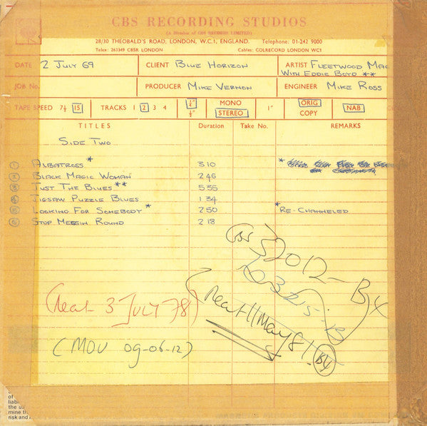 A1. Need Your Love So Bad 3:50 A2. Coming Home 2:38 A3. Rambling Pony 2:40 A4. The Big Boat 2:35 A5. I Believe My Time Ain't Long 2:55 A6. The Sun Is Shining 3:10 B1. Albatross 3:10 B2. Black Magic Woman 2:46 B3. Just The Blues 5:35 B4. Jigsaw Puzzle Blues 1:33 B5. Looking For Somebody 2:50 B6. Stop Messin' Round 2:18