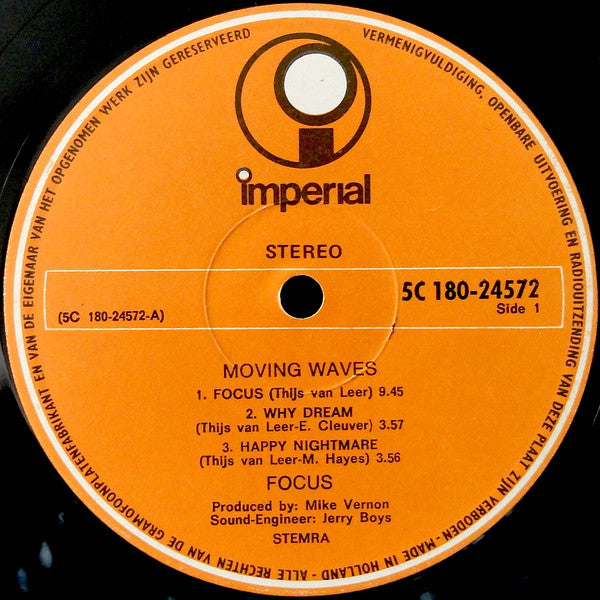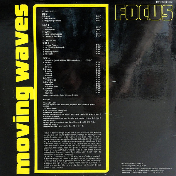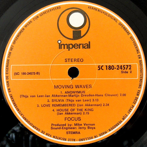 A1. Focus 9:45 A2. Why Dream 3:57 A3. Happy Nightmare 3:56 B1. Tommy 3:25 B2. Anonymous 7:00 B3. Sylvia 3:13 B4. Love Remembered 2:34 B5. House Of The King 2:15 C1. Hocus Pocus 6:35 C2. Le Clochard (Bread) 1:55 C3. Janis 3:00 C4. Moving Waves 2:30 C5. Focus II 4:00 . Eruption 22:35