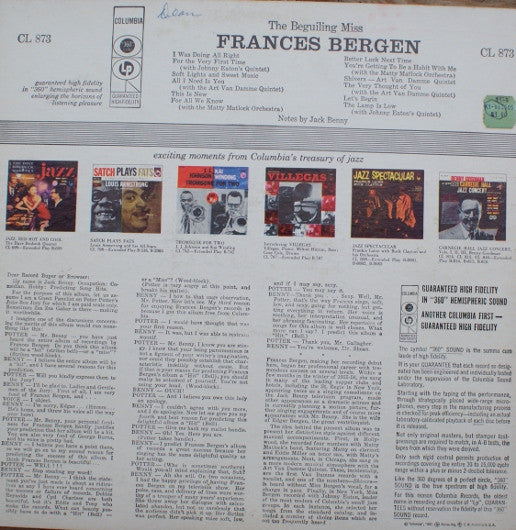Frances Bergen, the wife of Edgar Bergen the great ventriloquist, makes her recording debut here.