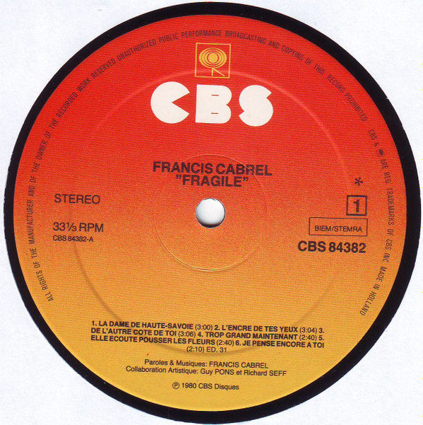 Recorded At Studio Condorcet Mixed At Red Bus Studios Phonographic Copyright (p) CBS Disques Copyright (c) CBS Disques Pressed By CBS, Haarlem Engineered At Studio Marcadet Published By Les Editions 31 Lacquer Cut At CBS Studios, Paris Record Company CBS Inc.