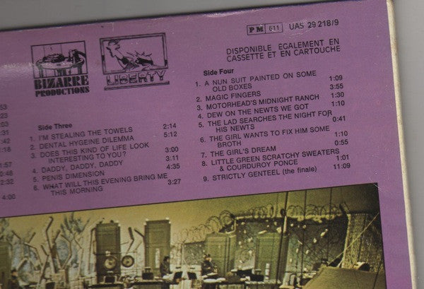 A1. Semi-Fraudulent / Direct-From-Hollywood Overture 1:59 A2. Mystery Roach 2:33 A3. Dance Of The Rock & Roll Interviewers 0:48 A4. This Town Is A Sealed Tuna Sandwich (Prologue) 0:56 A5. Tuna Fish Promenade 2:30 A6. Dance Of The Just Plain Folks 4:39 A7. This Town Is A Sealed Tuna Sandwich (Reprise) 0:59 A8. The Sealed Tuna Bolero 1:40 A9. Lonesome Cowboy Burt 3:51 B1. Touring Can Make You Crazy 2:53 B2. Would You Like A Snack? 1:23 B3. Redneck Eats 3:03 B4. Centerville 2:31 B5. She Painted Up Her Face 1:42 B6. Janet's Big Dance Number 1:18 B7. Half A Dozen Provocative Squats 1:57 B8. Mysterioso 0:48 B9. Shove It Right In 2:32 B10. Lucy's Seduction Of A Bored Violinist & Postlude 4:00 C1. I'm Stealing The Towels 2:14 C2. Dental Hygiene Dilemma 5:12 C3. Does This Kind Of Life Look Interesting To You? 3:00 C4. Daddy, Daddy, Daddy 3:11 C5. Penis Dimension 4:35 C6. What Will This Evening Bring Me This Morning 3:27 D1. A Nun Suit Painted On Some Old Boxes 1:09 D2. Magic Fingers 3:55 D3. Motorhead's Midnight Ranch 1:30 D4. Dew On The Newts We Got 1:10 D5. The Lad Searches The Night For His Newts 0:41 D6. The Girl Wants To Fix Him Some Broth 1:10 D7. The Girl's Dream 0:55 D8. Little Green Scratchy Sweaters & Courduroy Ponce 1:01 D9. Strictly Genteel (The Finale) 11:09