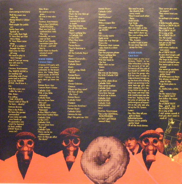 A1. The Central Scrutinizer 3:27 A2. Joe's Garage 6:10 A3. Catholic Girls 4:26 A4. Crew Slut 5:51 B1. Wet T-Shirt Nite 5:26 B2. Toad-O Line 4:18 B3. Why Does It Hurt When I Pee? 2:35 B4. Lucille Has Messed My Mind Up 7:17