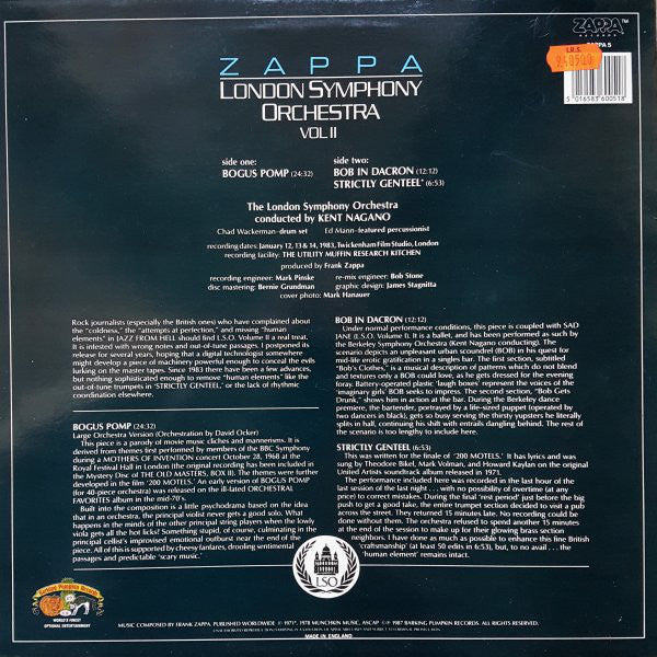 A. Bogus Pomp (Large Orchestra Version) 24:32B1. Bob In Dacron 12:12B2. Strictly Genteel 6:53