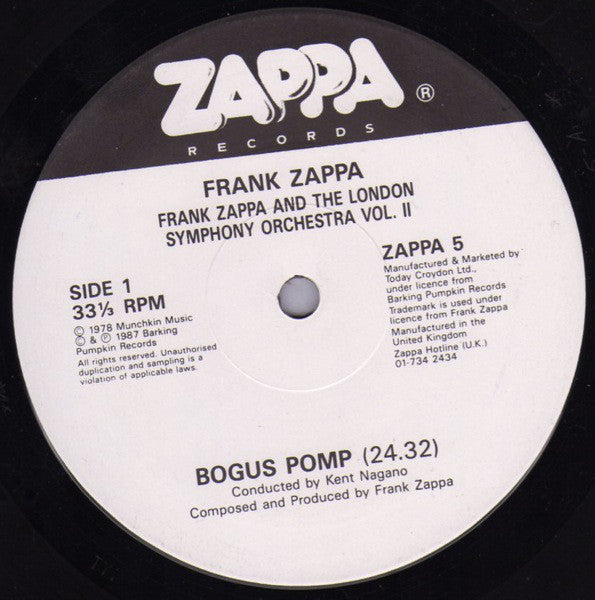 Recorded At UMRKMastered At Bernie Grundman MasteringRecorded At Twickenham Film StudiosPhonographic Copyright (p) Barking Pumpkin RecordsCopyright (c) Barking Pumpkin RecordsManufactured By Today Croydon Ltd.Marketed By Today Croydon Ltd.Data provided by Discogs